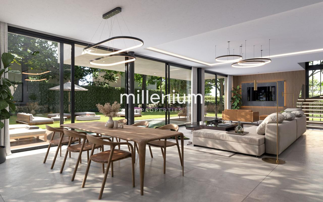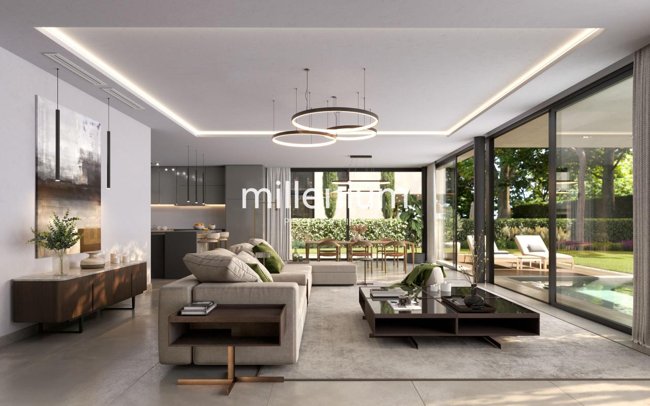 - Majestueux double salon baigné de lumière, sublimé par de larges baies vitrées s’ouvrant sur la terrasse et le jardin