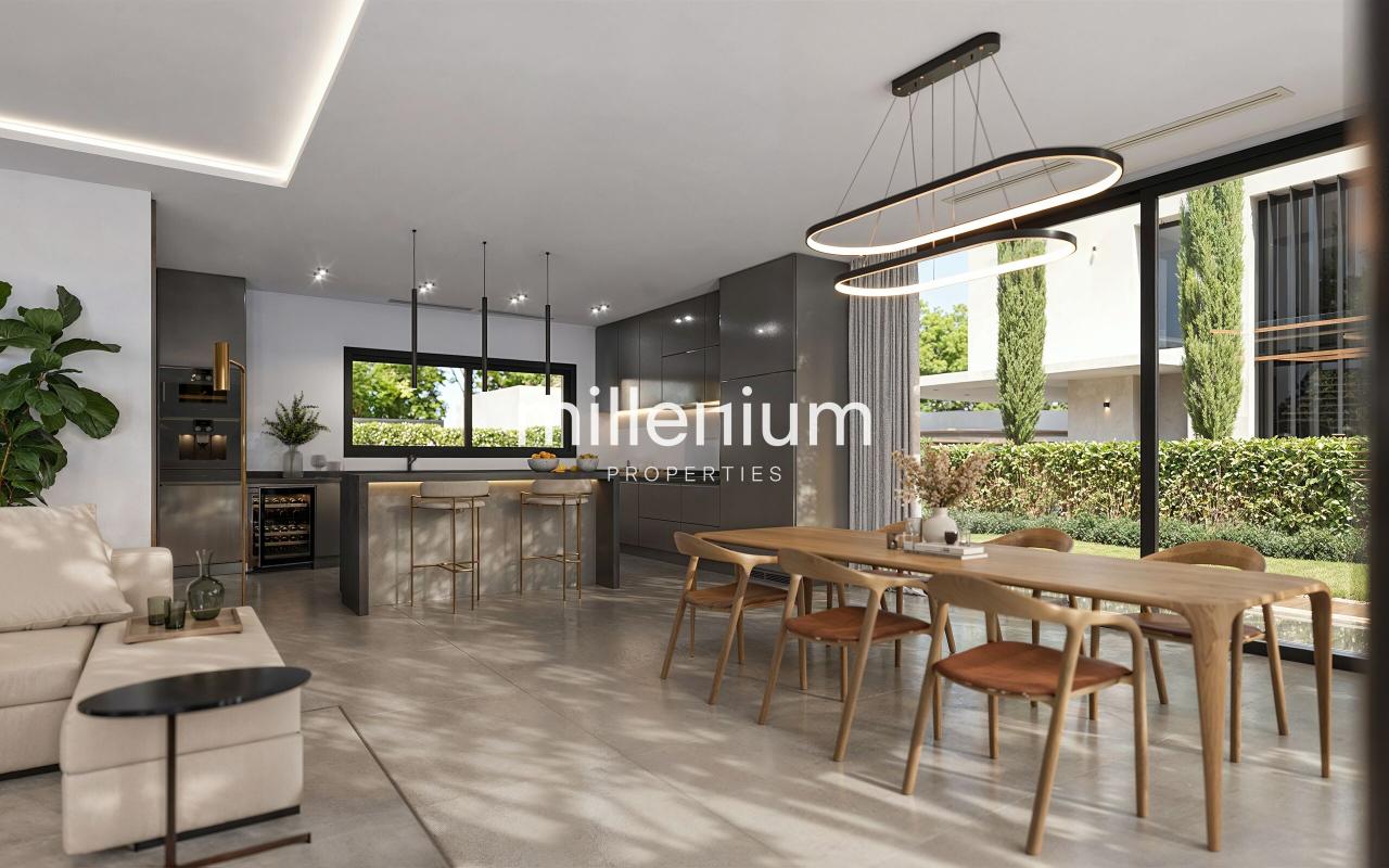- Cuisine contemporaine avec îlot central, cellier attenant et salle à manger élégante, équipée d’appareils électroménager haut de gamme type V-ZUG / GAGGENAU pour un confort optimal au quotidien