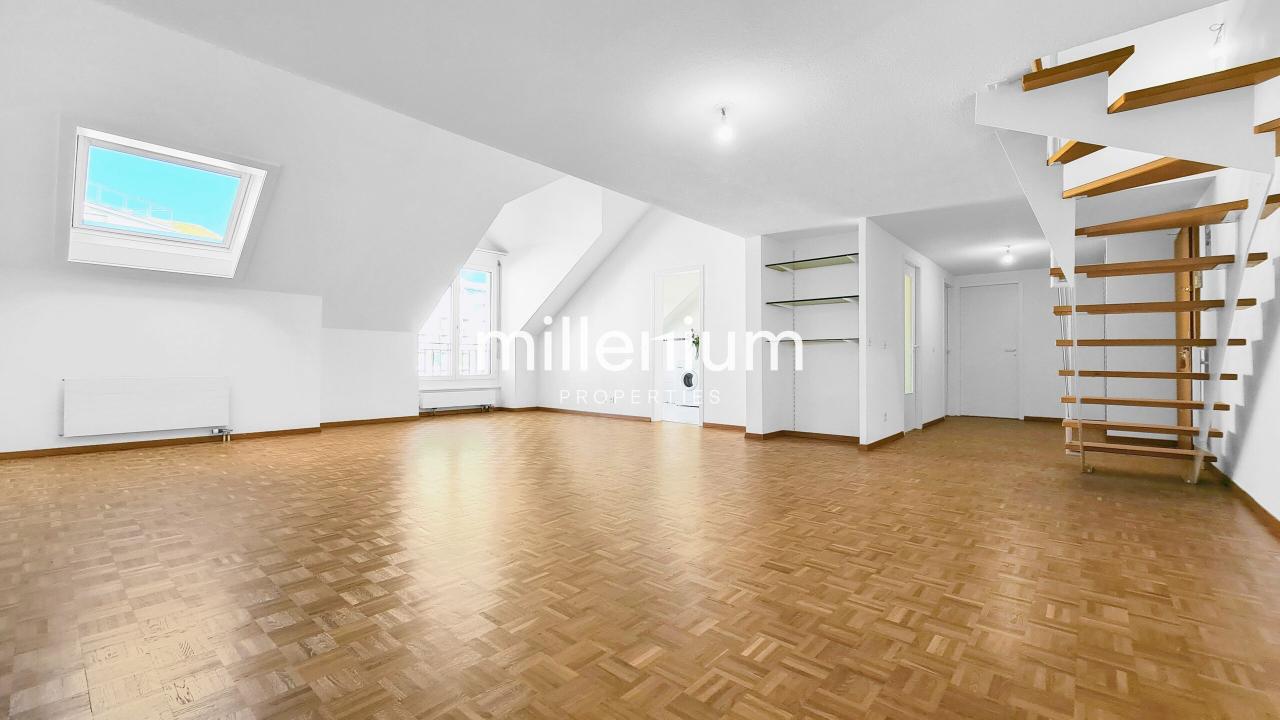 Au cœur de Genève, découvrez ce spacieux duplex de 117m2 de 3,5 pièces au sein d'une résidence moderne et sécurisée, avec ascenseur.