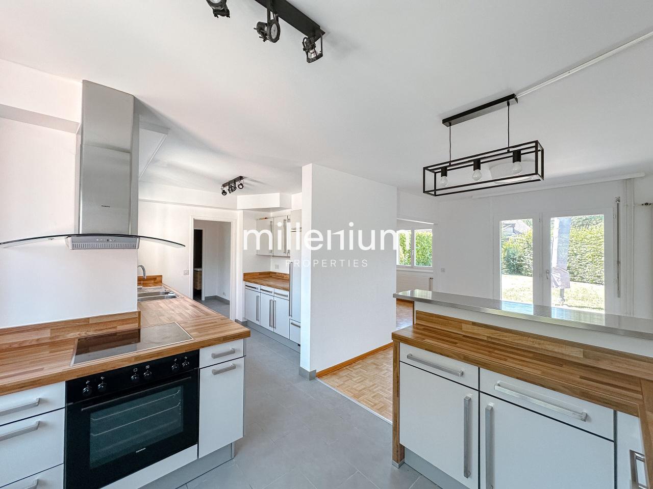 Nichée dans la commune prisée de Pregny-Chambésy, cette maison renovée en 2025 baignée de lumière offre un cadre de vie harmonieux entre ville et campagne.