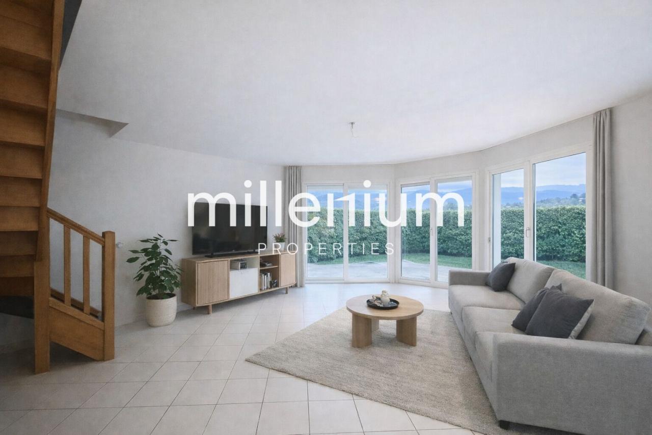 Située au cœur d’un petit lotissement calme et résidentiel à Saint-Genis-Pouilly, cette charmante maison jumelée d’environ 129 m² habitables séduira les familles à la recherche d’un cadre de vie paisible, à seulement quelques minutes de la frontière suisse et à moins de 30 minutes de Genève.