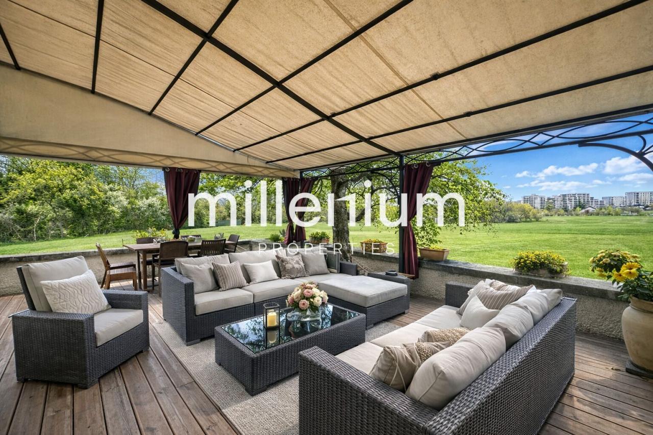 Cet appartement en rez de chaussée avec une terrasse de 20m2 offre un confort de vie exceptionnel, au calme avec une vue dégagée sur la campagne Genevoise et sa vue sur les montagnes.