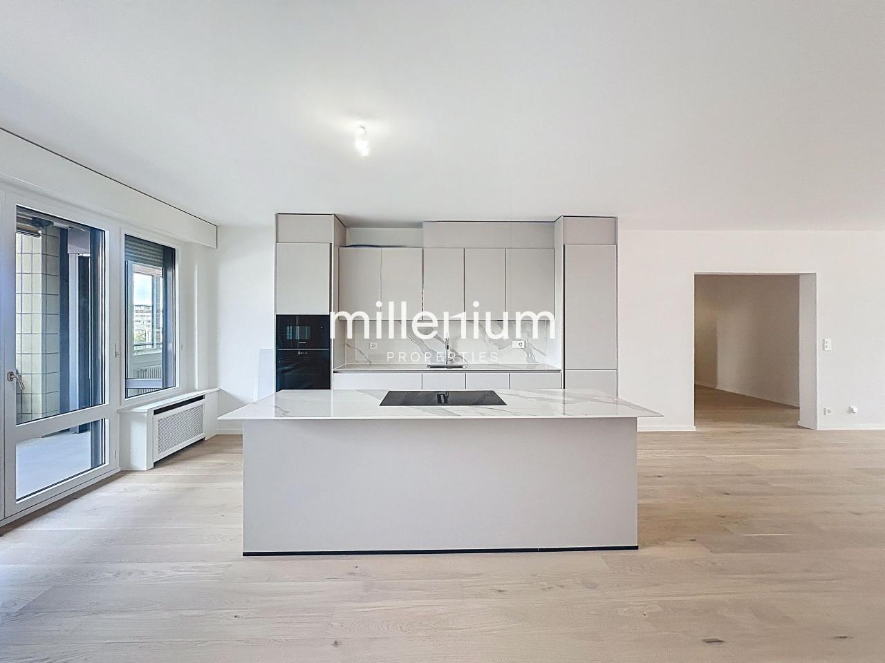 Appartement de standing, refait à neuf, de 5.5 pièces avec vue imprenable sur le Rhône, la cathédrale et le jet d'eau.