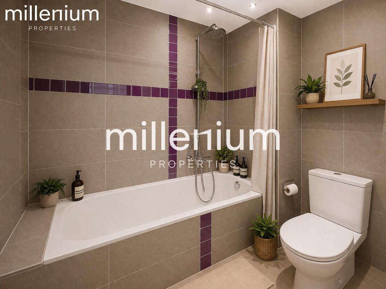 - Une pièce de vie lumineuse avec rangements intégrés,