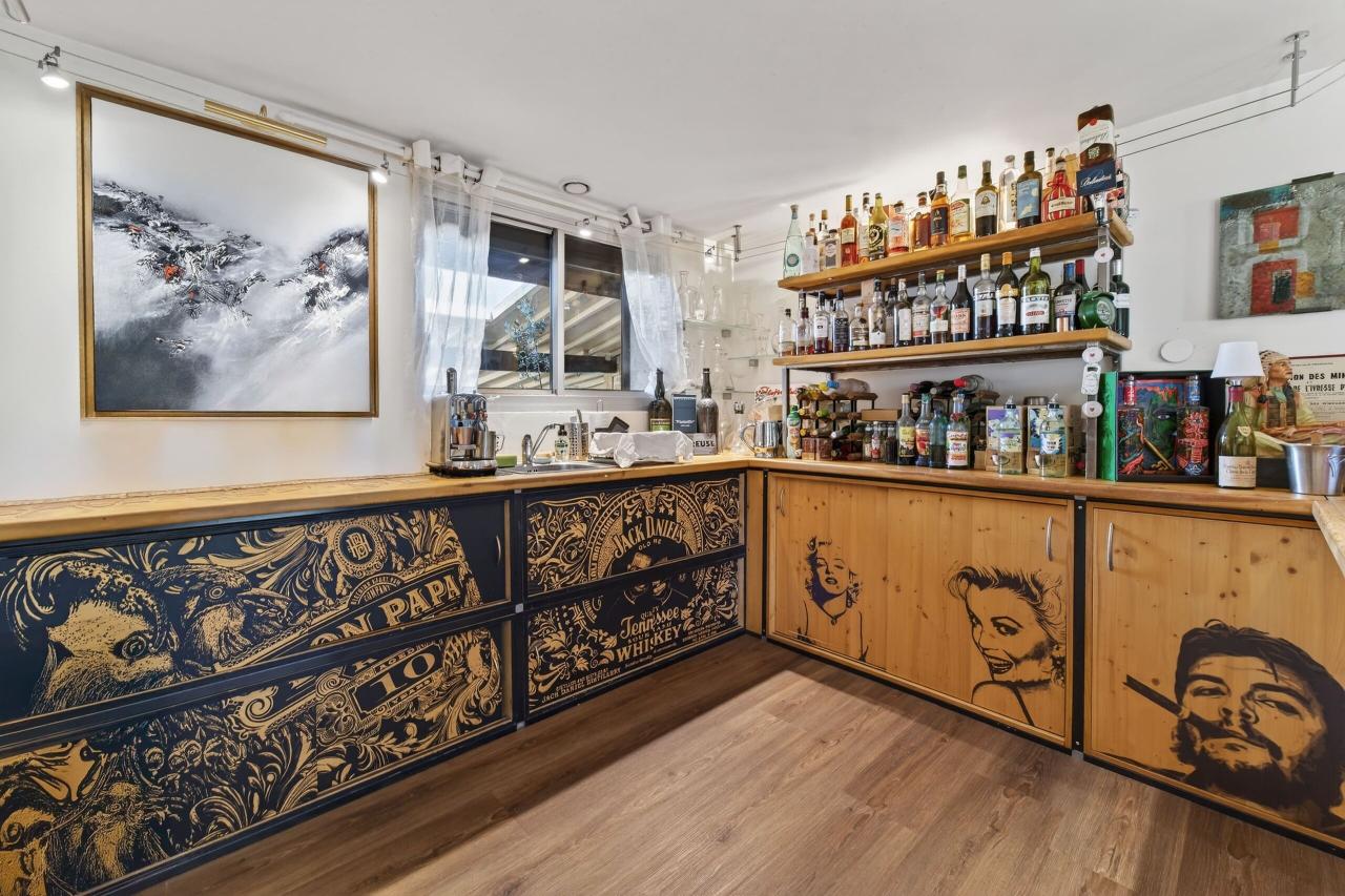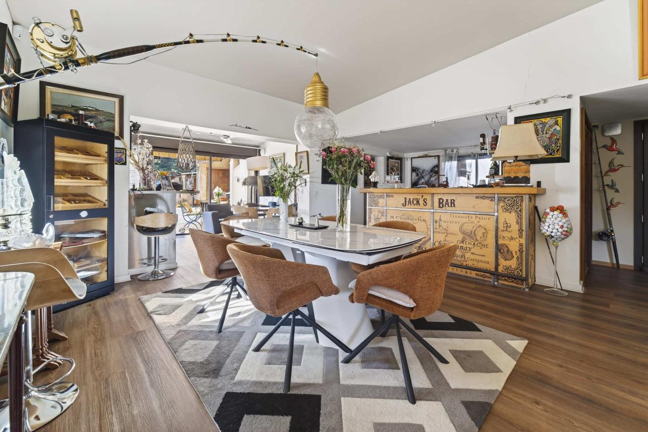 Un espace bar ainsi qu’une superbe cave à vin en sous-sol viennent parfaire cet espace dédié à la réception.