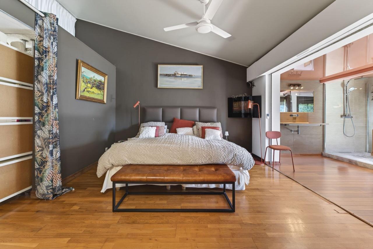 Une seconde suite avec salle de bains ainsi qu’une troisième chambre complètent cet espace, pensé pour préserver l’intimité de chacun.