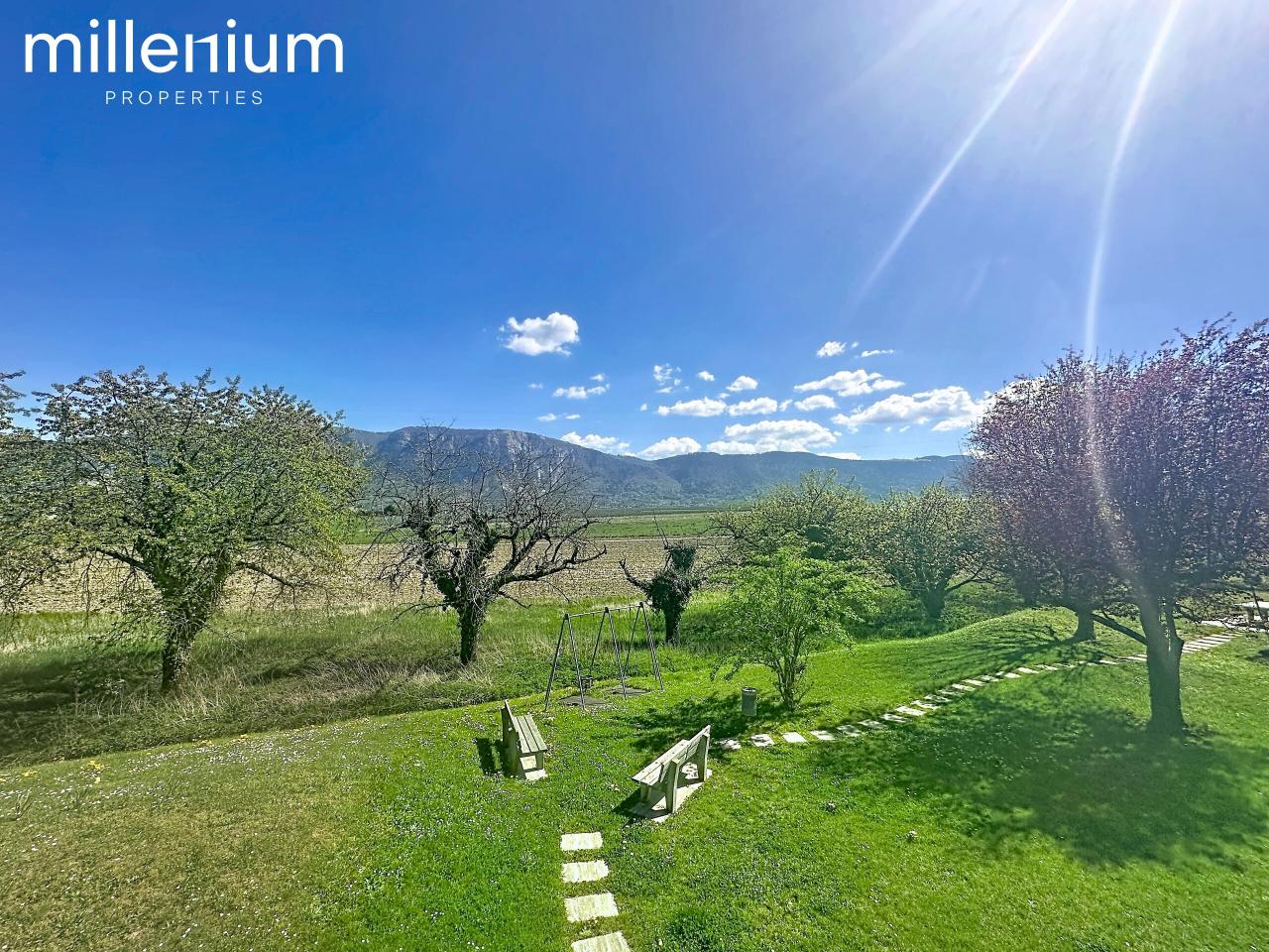 Bénéficiant d’une vue dégagée sur le Salève et situé en bordure de zone agricole, ce bel appartement en duplex offre une surface habitable de 182 m², répartie comme suit :