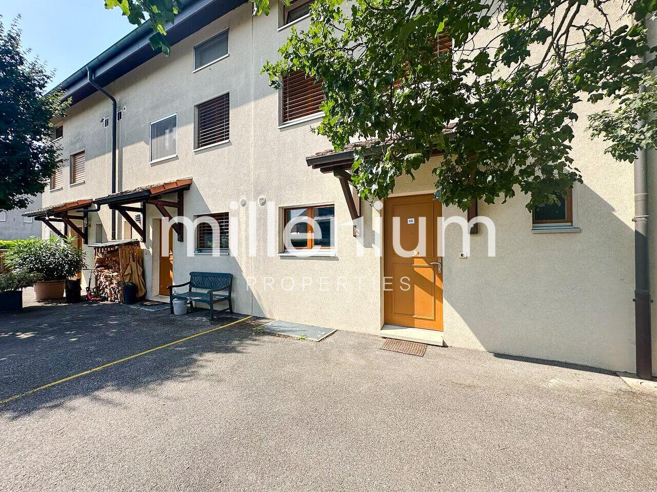 Cette villa mitoyenne de 232 m2 utile est située dans un lotissement de la commune de Chancy, au calme de la campagne genevoise.