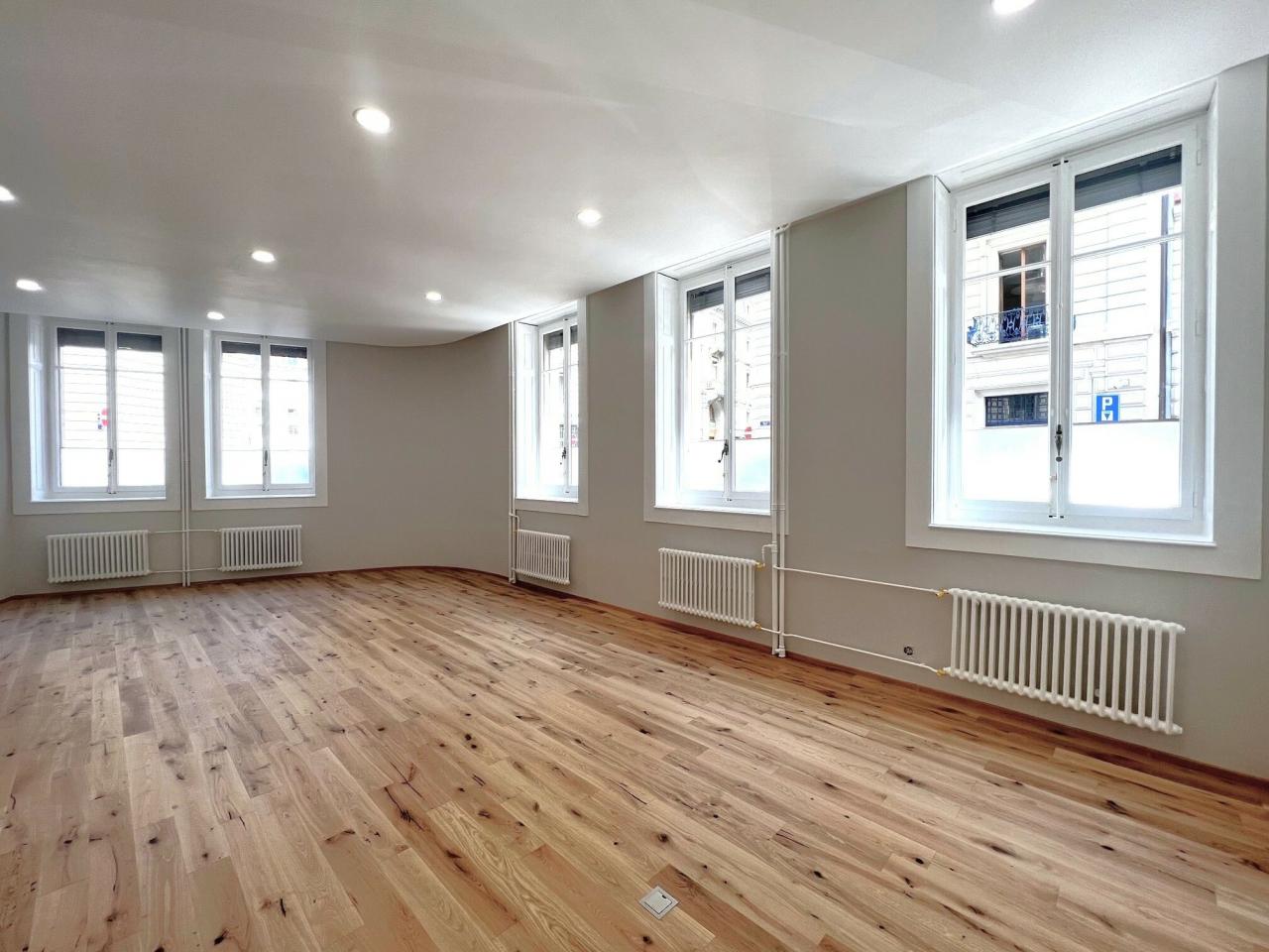 Bureaux de haut standing situés au RDC d’un immeuble classé au quartier des banque à Genève à proximité de Bel-Air.