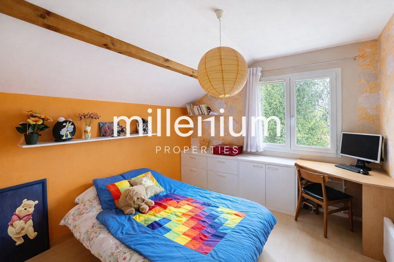 Située à Neydens, cette maison individuelle offre un cadre de vie idéal pour les familles en quête de confort, sérénité et proximité immédiate avec la frontière suisse.