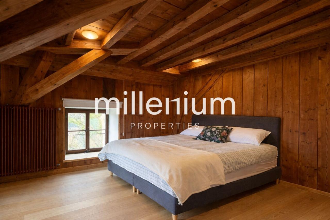 À l’extérieur, un magnifique jardin paysager entoure la villa et invite à la détente, tandis qu’une vue partielle sur le lac vient sublimer l’ensemble.